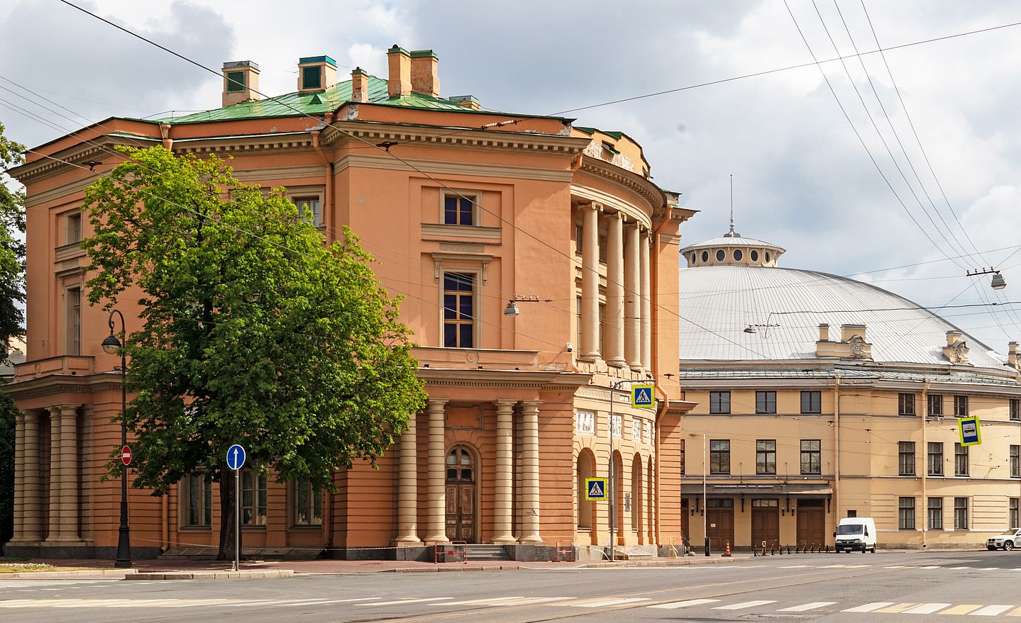 The pavilions serve as a connecting element between the castle and the urban buildings, creating a monumental impression. The lower floors are adorned with Fyodor Gordeyev’s bas-reliefs depicting scenes from ancient myths about the travels of Dionysus. The bas-reliefs probably featured allegorical imagery associated with Emperor Paul I. The construction of the pavilions was completed by 1800. They were designated as residences for the ladies-in-waiting and maids of honour of the Imperial Court.